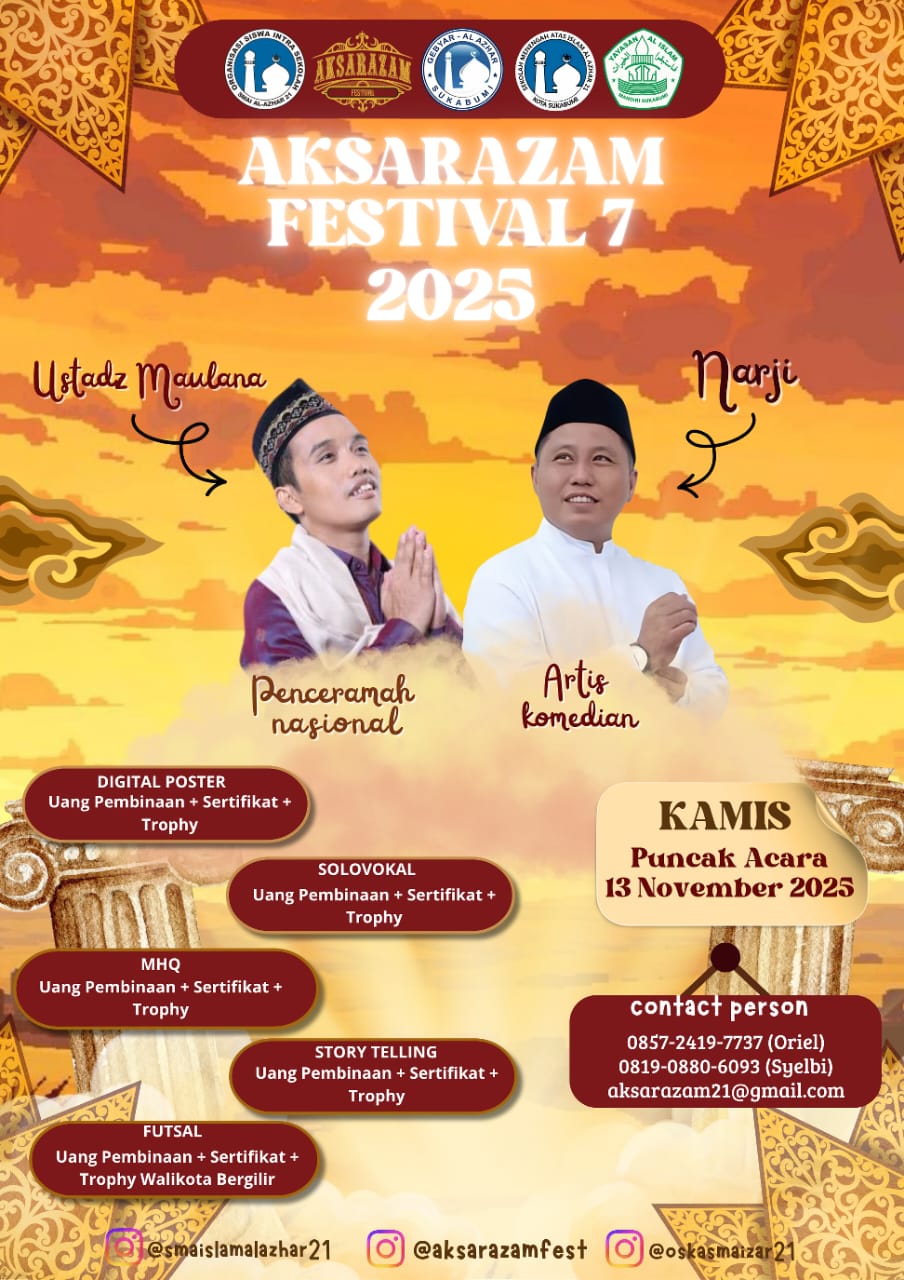 Hallo sahabat aksa ️ Sekarang pendaftaran aksarazam udah kita buka!!! Setelah sekian lama tak berjumpa akhirnya sebentar lagi kita dapat berjumpa lagi jadi jangan lupa daftarkan diri kalian sebelum kuota lomba terpenuhi oke... COMING SOON AKSARAZAM FESTIVAL 2025 Instagram : @aksarazamfest Instagram : @oskasmaizar21 Tiktok : oskasmaizar21 Gmail : oskaalazhar21@gmail.com #mudamendunia #nusantarajaya…